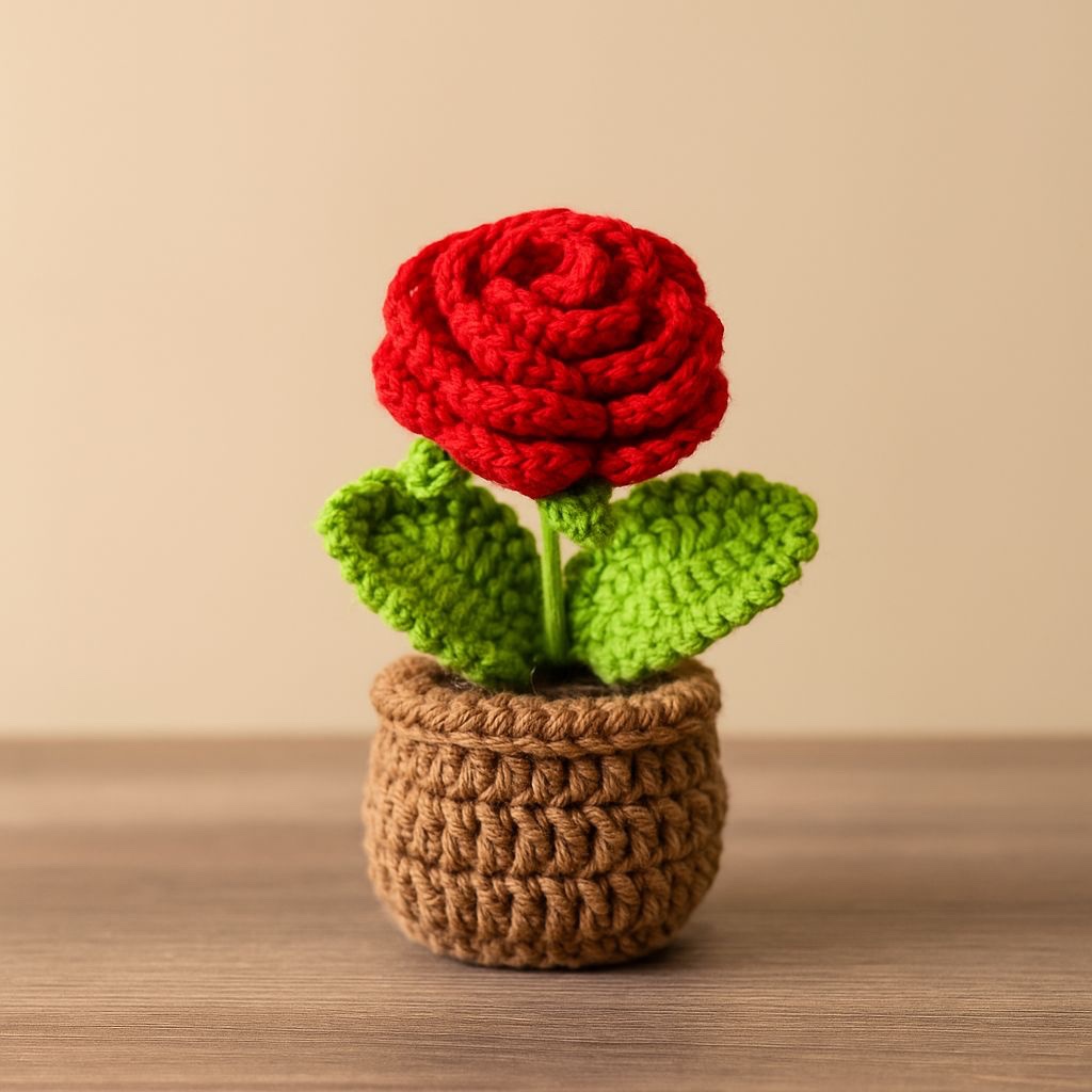 Bring timeless beauty into your space with this Handmade Crochet Rose in Pot. Carefully crafted with soft yarn, this crochet rose stands tall in a mini pot, symbolizing love and elegance. Perfect as a unique gift for Valentine’s Day, birthdays, anniversaries, or simply to brighten your desk or living room.
